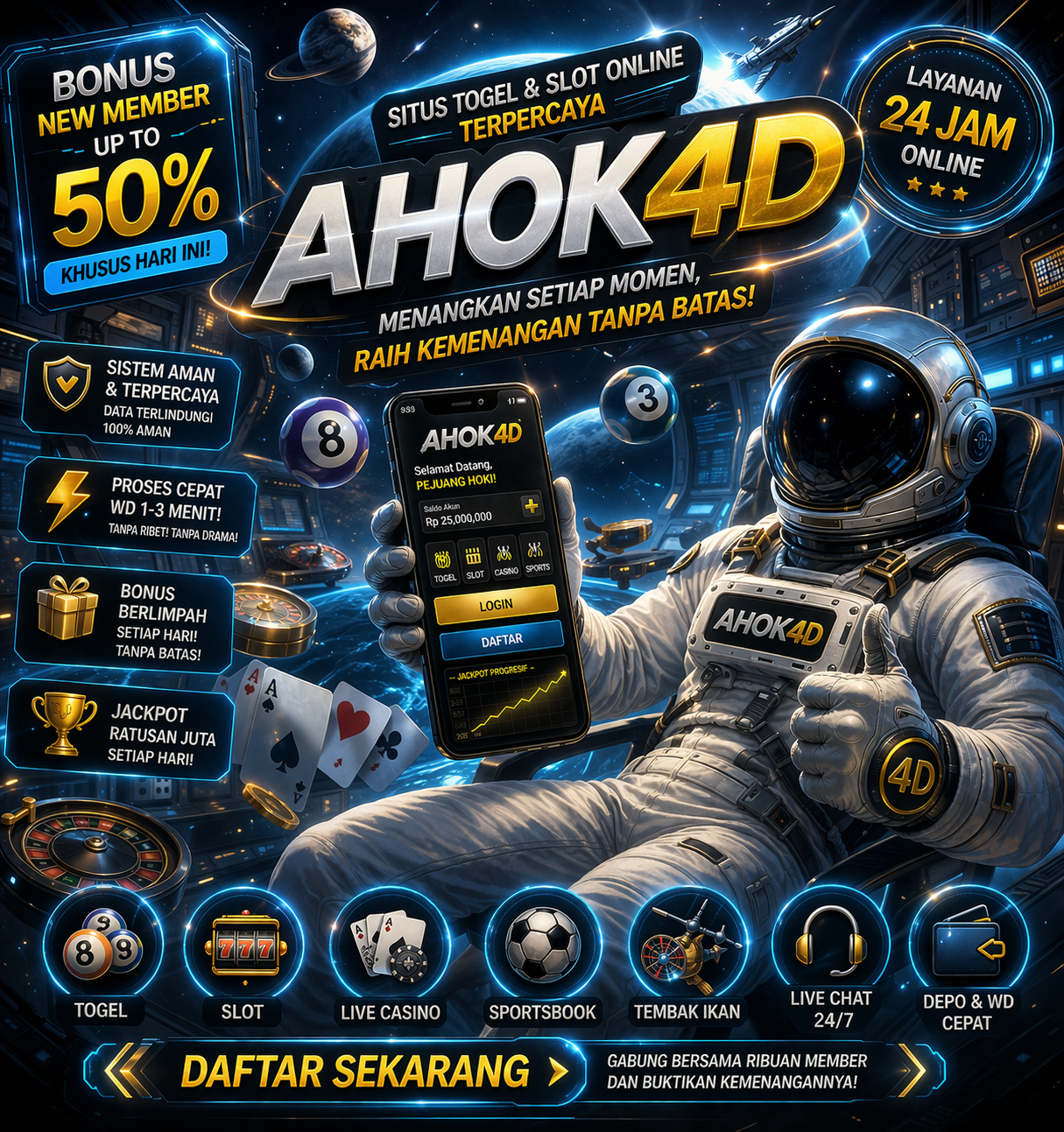 Customer service AHOK4D selalu sigap menjawab pertanyaan soal cara bermain dan rahasia angka. Profesional dan ramah banget.